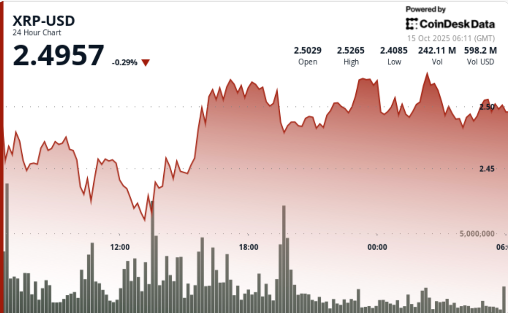 • Late-session trade saw XRP recover modestly to $2.50 as dip-buying stabilized order books.